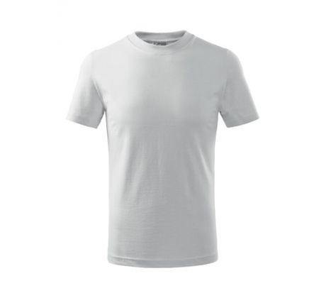 Dětské tričko střední gramáže s bočními švy. Úzký průkrčník s přídavkem 5 % elastanu. Vnitřní část zadního průkrčníku začištěna tkanou páskou. Zpevněný ramenní šev.