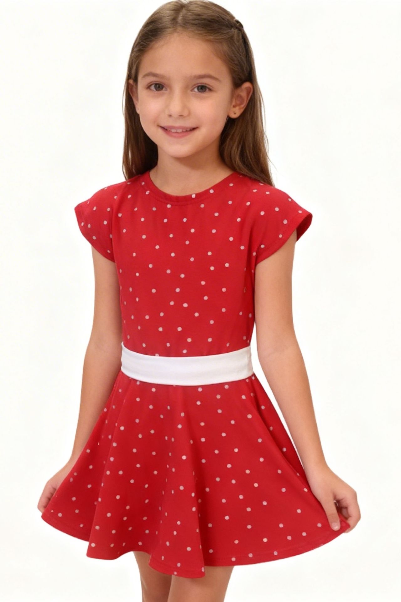 Dívčí šaty červené s puntíky