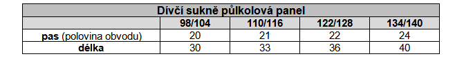 Sukně je řešená do nápletu v pase s gumou šíře 3 cm (neohýbá se, lze upravit).