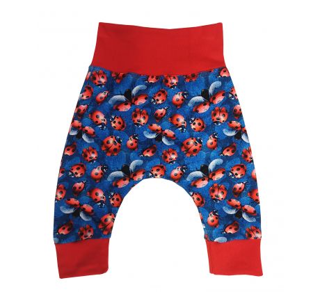 Praktické pohodlné kalhoty, v pase ukončeny do širokého lemu. Do velikosti 68 včetně je pas pouze do nápletu, od velikosti 74 je v pase tkaná pruženka šíře 2cm (neohýbá se, drží tvar).